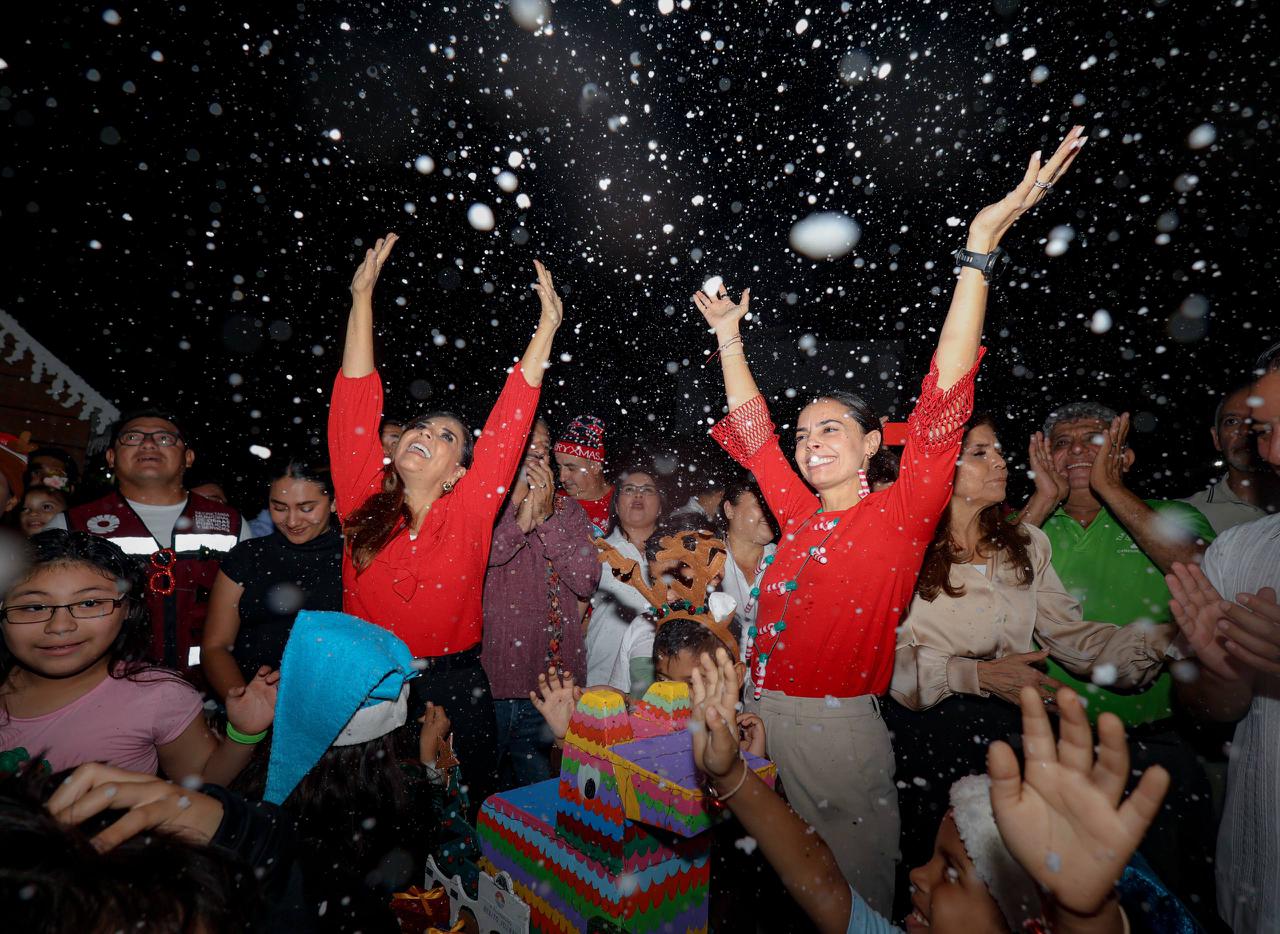 Cancún, Q. R., a 10 de diciembre de 2025.- Para fortalecer la unión comunitaria y compartir el espíritu de la Navidad, la Presidenta Municipal Ana Paty Peralta y la Gobernadora Mara Lezama iluminaron la villa navideña de la Supermanzana 95, espacio que por sexto año consecutivo preparó con dedicación y cariño el equipo de Servicios Públicos.
