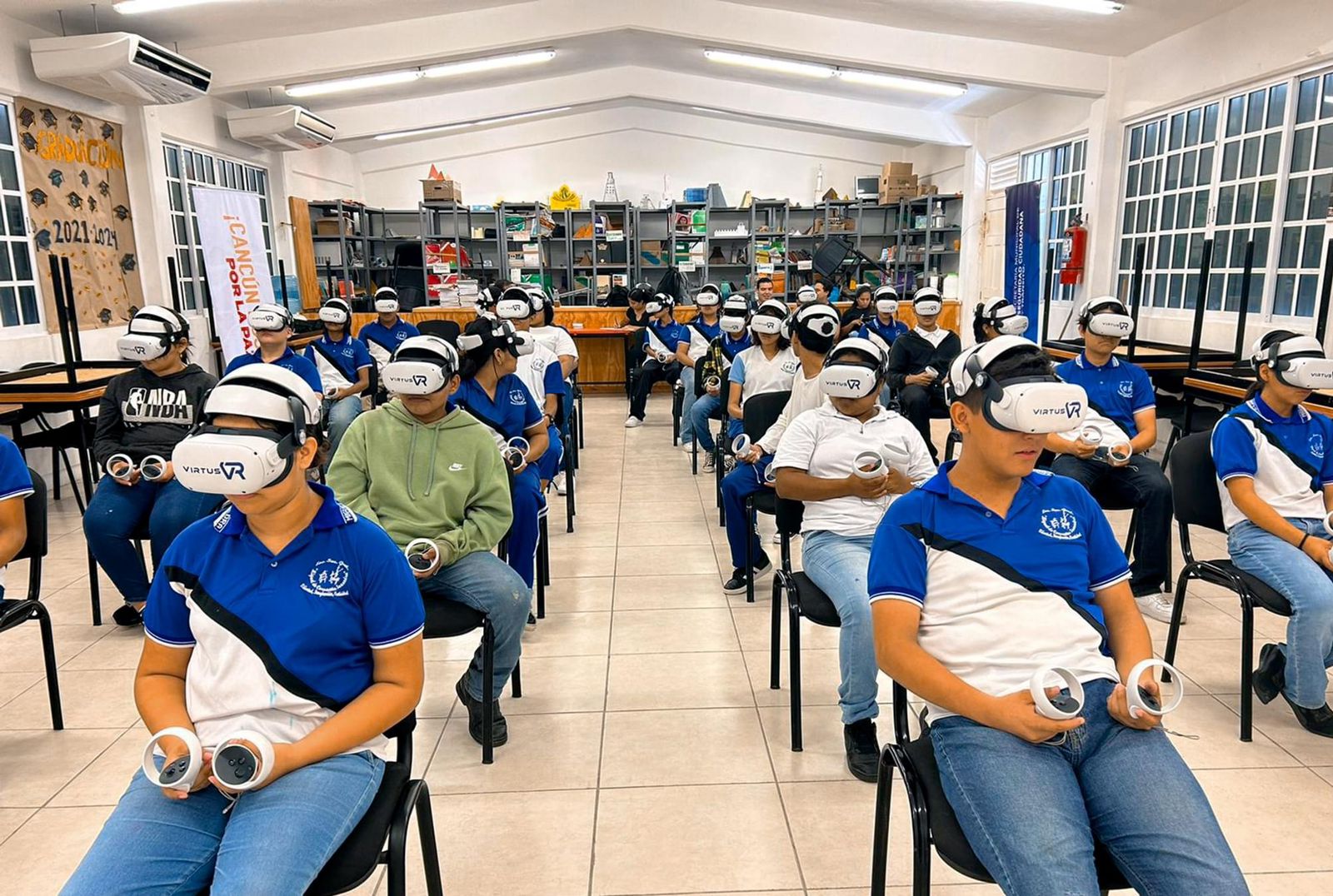 Durante estas visitas en las escuelas, no solo se ofreció una experiencia inmersiva con lentes de realidad virtual, sino que también se brindó atención psicológica gratuita a las y los jóvenes cancunenses que lo requerían.