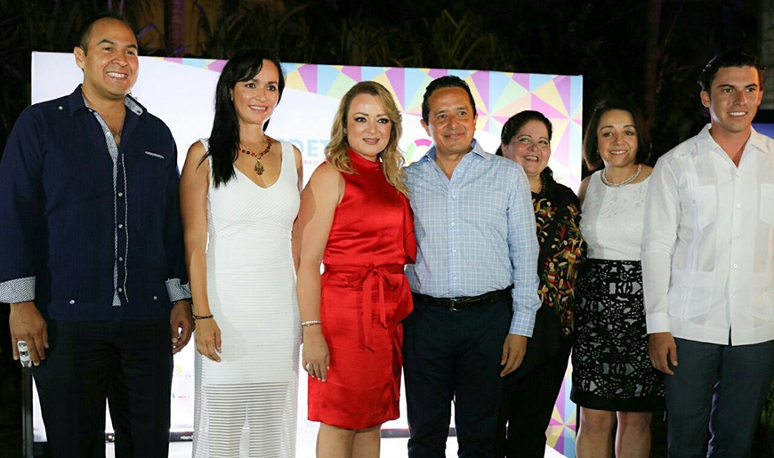 La Presidenta Municipal acompañó al gobernador Carlos Joaquín González y a la presidenta del DIF estatal, Sra. Gabriela Rejón de Joaquín, durante el coctel de bienvenida que ofreció el gobierno estatal a turisteros y periodistas de Quintana Roo.