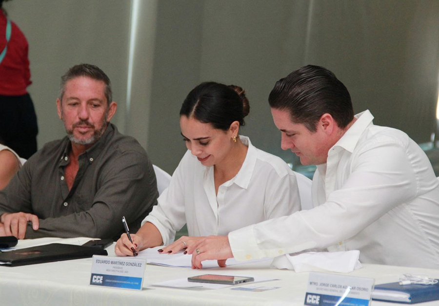 Cancún, Q.R.- Al participar en la reunión mensual del Consejo Coordinador Empresarial del Caribe (CCE), la presidenta municipal Ana Patricia Peralta de la Peña, firmó un listado de compromisos de trabajo en conjunto que se hará a través de diferentes áreas del Ayuntamiento de Benito Juárez para mejorar la capacidad de respuesta, sobre todo en materia de trámites que permitan abrir más negocios.