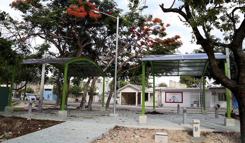 Para consolidar esos recintos, dentro de los preparativos, se realizaron trabajos de trazo y nivelación del terreno, colocación de concreto estampado para ser la base de los gimnasios al aire libre, instalación eléctrica, así como la cubierta urbana acrílica en estructura de acero para el área, que son propiamente los techos que permiten alargar el tiempo de uso, ya que pueden emplearse bajo lluvia o los rayos del sol.