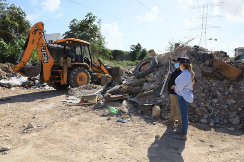 Solidaridad.- El gobierno de Solidaridad, que encabeza la presidenta Lili Campos Miranda, a través de la Secretaría de Servicios Públicos, lleva a cabo acciones de limpieza y recoja de escombros y cacharros de un macro tiradero que se encuentra en la colonia Fundador, como parte de la campaña “Manos a la obra”, gracias al cual se ha avanzado hasta la fecha con la eliminación de un 30% de los 500 micro tiraderos detectados en el municipio.