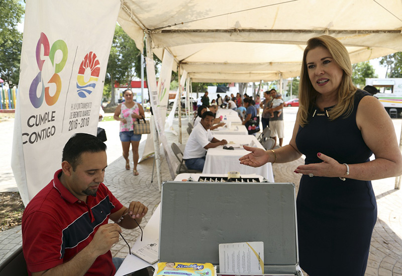 Cancún.- La presidenta honoraria del DIF Benito Juárez, Sra. Elvia Barba de Estrada, realizó un recorrido para constatar los servicios otorgados por el Programa para el Rescate de Espacios Públicos para la Prevención de la Violencia, llevado a cabo en el parque “Las Palapas II” en la Región 247.
