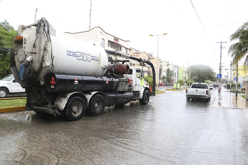 Ante las precipitaciones pluviales registradas en los últimos días en el municipio de Benito Juárez, las Direcciones de Protección Civil, Bomberos y Servicios Públicos trabajan a marchas forzadas para mantener el correcto funcionamiento de las rejillas y pozos de absorción.