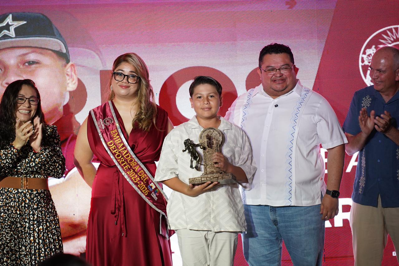 Cozumel, a 19 de noviembre de 2025.- El gobierno municipal que encabeza el presidente José Luis Chacón Méndez, a través de la dirección de Deportes y Atención a la Juventud, realizó la ceremonia de entrega del Premio Municipal del Deporte 2025 y la imposición de la banda de Embajadora del Deporte 2025–2026 a Luna Elizabeth Canto Burgos, con el propósito de honrar a las y los atletas que han destacado por su disciplina, pasión y resultados a nivel local, estatal y nacional.