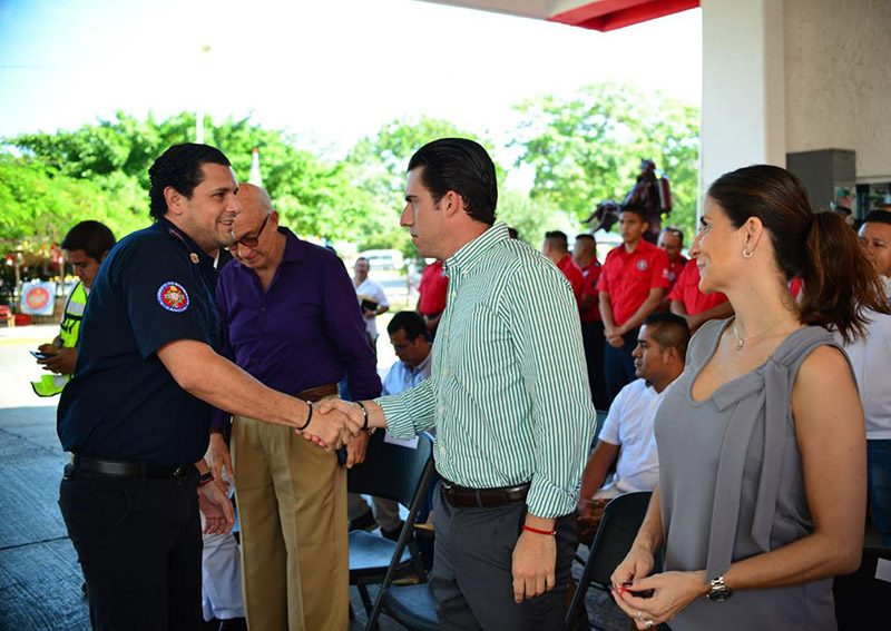 Se dijo muy complacido por la entrega estos equipos, donde a su vez, los Bomberos Cancún hicieron entrega de una estatuilla de reconocimiento a la Fundación Oasis.