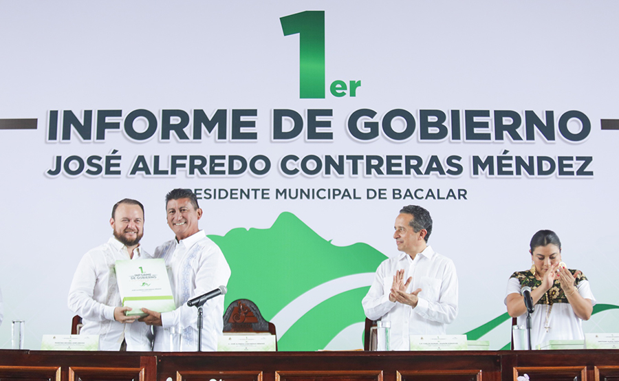 El Magistrado Presidente Heyden Cebada Rivas asistió a la Tercera Sesión Publica y Solemne del H. Ayuntamiento del Municipio de Bacalar, con motivo del Primer Informe de Gobierno del Presidente Municipal C. José Alfredo Contreras Méndez; en el que presentó los logros y metas cumplidas del Plan de Desarrollo Municipal 2021 – 2024.