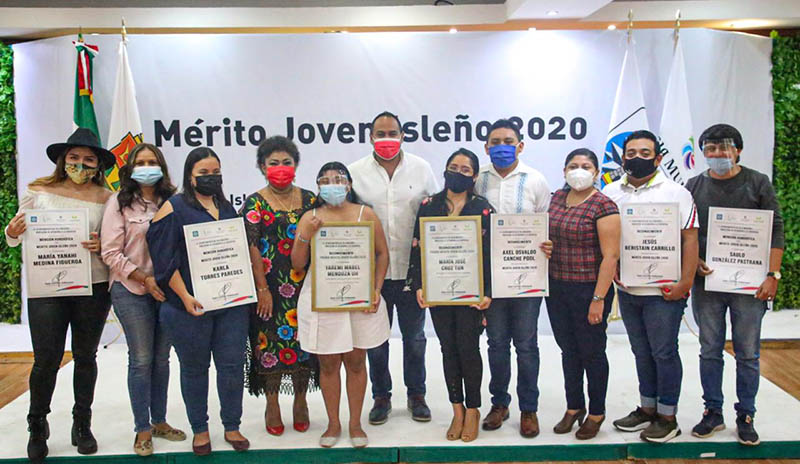 Además de estas dos jóvenes galardonadas con el premio al “Mérito Joven Isleño 2020”, el edil Carrillo Soberanis, acompañado de la Secretaria General del Ayuntamiento, Miriam Trejo León y de la directora de Atención a la Juventud, Rubí Lora Sosa, hizo entrega de reconocimientos a los jóvenes que participaron en la convocatoria, dentro del marco del Día de la Juventud.