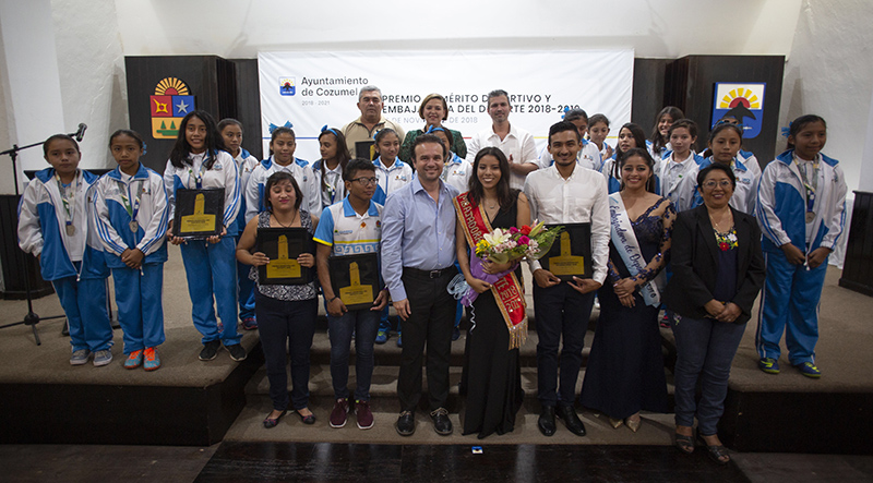 Cozumel.- Como una forma de reconocer el esfuerzo, la disciplina y el talento de los jóvenes atletas y sus entrenadores, el Presidente Municipal, Pedro Joaquín, entregó reconocimientos a los ganadores del Premio Municipal de Deporte.