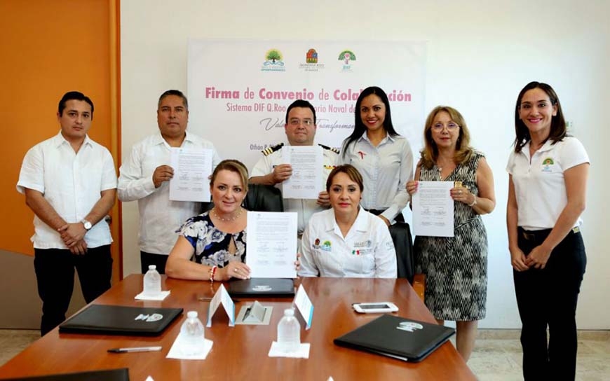 En cuanto al convenio de colaboración fue firmado por parte del Sistema DIF Quintana Roo, por la Presidenta, señora Gabriela Rejón de Joaquín y la directora general, María Elba Carranza; por el Sanatorio Naval, por su director, Alejandro Méndez Guzmán, y por el CRIQ, el subdirector general de Salud y Atención a Personas con Discapacidad del DIF Quintana Roo, David Landa Juárez.