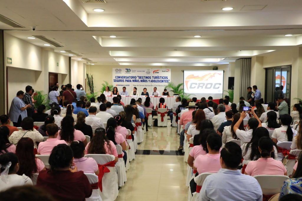 Playa del Carmen, Solidaridad, 19 de febrero del 2023.- Como parte de las políticas públicas que impulsa la presidenta municipal Lili Campos para satisfacer y garantizar los derechos de la niñez y la adolescencia, se realizó el conversatorio “Destinos turísticos seguros para niñas, niños y adolescentes” en el auditorio de la CROC, dirigido al sector turístico, así como autoridades municipales.
