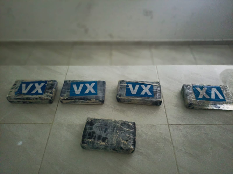 En total fueron cinco paquetes de forma rectangular, envueltos en cinta color negra y una segunda capa en color transparente, con iniciales VX que en su interior contenían polvo blanco, con las características de la droga conocida como cocaína – sustancia a determinar-, mismas que al ser empaques utilizadas por traficantes, se procedió al embalaje y puesta a disposición de la FGR en Cancún.