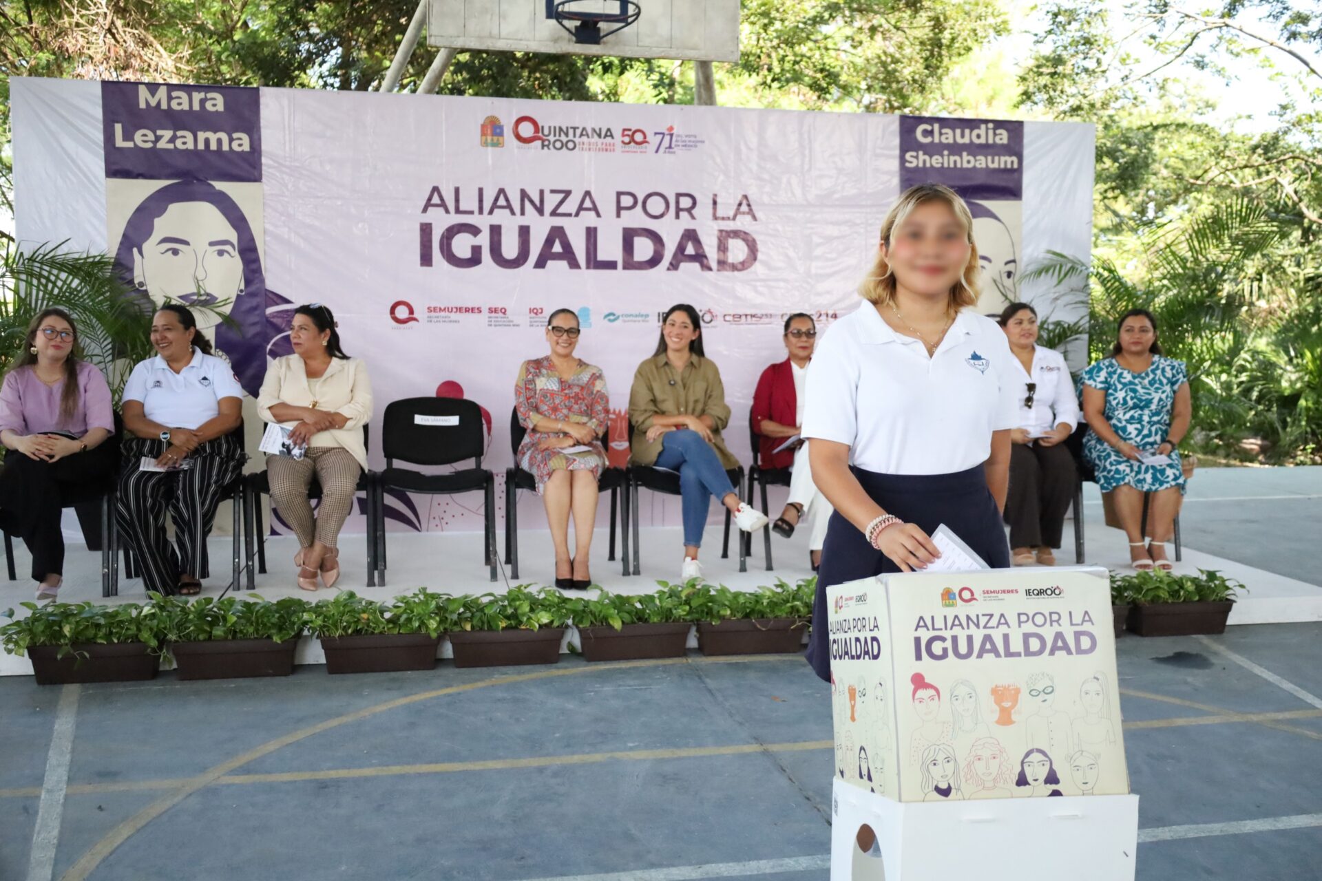 Chetumal, Quintana Roo; a 4 de diciembre. – El Instituto Electoral de Quintana Roo (IEQROO) participó en el evento “Alianza por la Igualdad, ¡Nuestra Opinión Cuenta!”, dirigido a más de 450 alumnas de bachillerato, con el objetivo de fomentar la cultura cívica y democrática, e impulsar la participación política de las mujeres jóvenes.