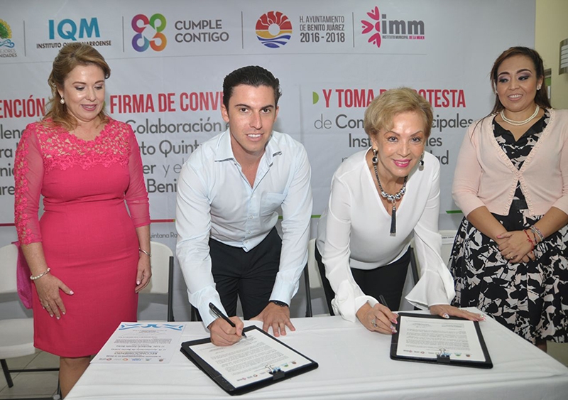 Al intervenir en el evento de la firma del convenio específico de colaboración entre el Instituto Quintanarroense de la Mujer y el H. Ayuntamiento de Benito Juárez, el Edil destacó que este instrumento ratifica la colaboración que existe entre las autoridades estatales y municipales desde el inicio de ambas administraciones. “Tenemos una magnífica comunicación, y coincidimos que lo importante es el bienestar de las mujeres”.