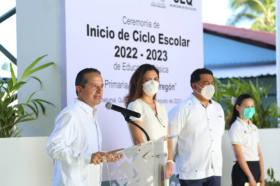 Durante la ceremonia, Carlos Joaquín ratificó el compromiso que tuvo su gobierno con la educación porque, a pesar de la pandemia, de escuelas cerradas, se mantuvieron abiertos a través de muchas formas, nuevas tecnologías, todos los canales posibles para que nuestras alumnas, alumnos no perdieran un solo día de educación.