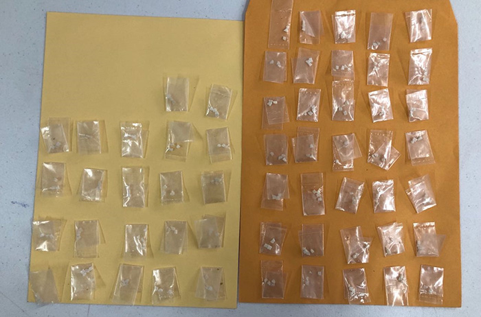En tanto que a la tercera persona, con iniciales F.A.A., traía consigo dos bolsitas de plástico transparente con hierba seca con las características de la marihuana y tres bolsitas de una sustancia sólida color beige con las características de la cocaína en piedra (crack) y dinero en efectivo.