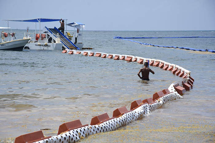 Sobre la colocación de mil 100 metros lineales de nuevas barreras marinas que protegerán los arenales de la calle Adolfo López Mateos al hotel Único, se dice que tiene 10 centímetro más de alto, lo que garantizará que se minimice el recale de la macro alga en la franja costera, protegiendo casi dos kilómetros de playas públicas.
