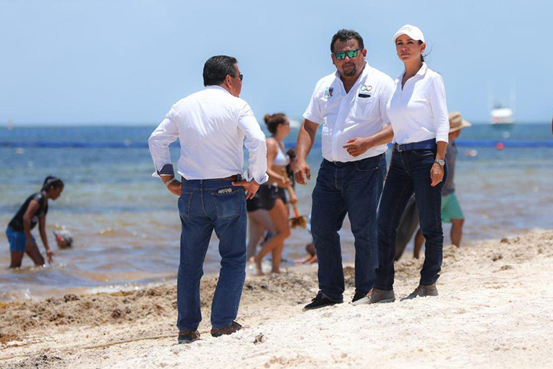 Vaya que la presidenta municipal de Puerto Morelos, Laura Fernández Piña, realiza un trabajo digno de aplaudir en la lucha contra el sargazo, tal es la importancia que ha convertido en el municipio en el único en el país que cuenta con un plan integral para atender el problema de la macroalga: modernas barredoras, colocación de barreras marinas y a punto a terminar de instalarse en un predio membrana con malla geo textil, para evitar filtraciones, cuando se deposite el alga.
