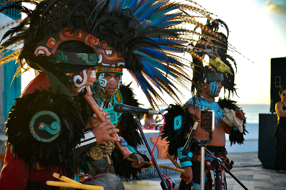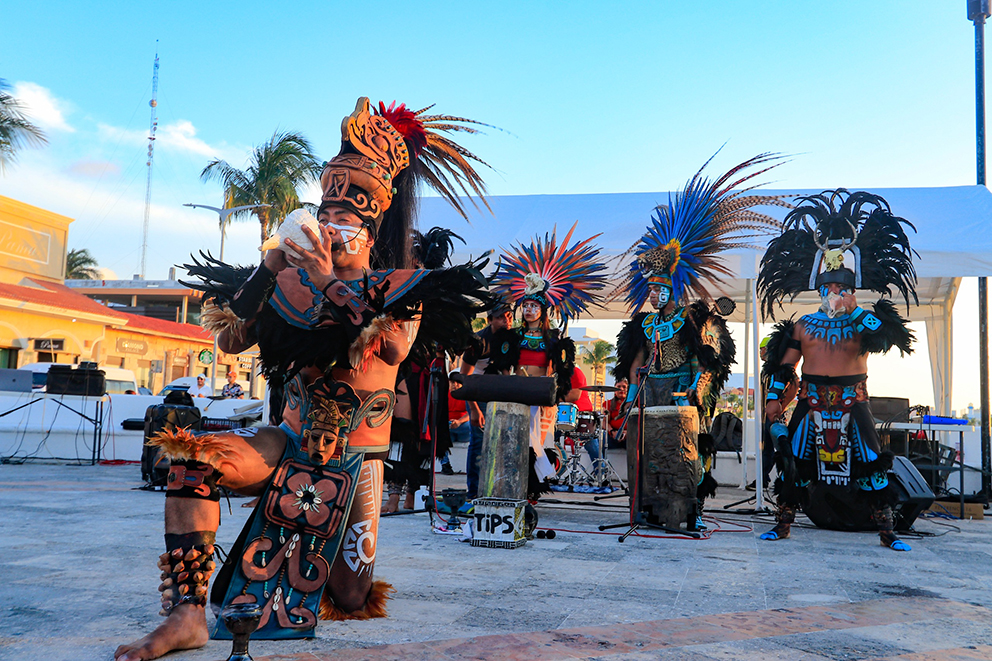 Los rayos del sol ocultándose en el horizonte en el último sábado del mes de abril, fueron el marco para disfrutar del performance del grupo de danza prehispánica Ool Kuxtal, que llamó la atención de turistas nacionales y extranjeros que se congregaron en la explanada de la bandera.