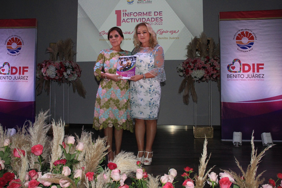 Cancún, Q. R..- La presidenta honoraria del Sistema DIF Benito Juárez, Verónica Lezama Espinosa, rindió su primer informe de actividades, en la Universidad TecMilenio, el cual fue atestiguado por la encargada de despacho de la Presidencia Municipal, Lourdes Latife Cardona Muza; la gobernadora electa, Mara Lezama y Ana Patricia Peralta de la Peña. Durante su discurso, la Presidenta Honoraria señaló que estar al frente de una institución de asistencia social le ha dado la oportunidad de coadyuvar en la transformación de la vida de cientos de familias que se encuentran en situación de vulnerabilidad, además de fortalecer la atención integral que ofrece la dependencia municipal. Detalló que se trabaja bajo cinco rubros: Niñas, Niños y Adolescentes; Mujeres; Personas con Discapacidad; Adultos Mayores y Familias, impulsando programas y servicios que garanticen el respeto a sus derechos humanos. En materia de atención a niñas, niños y adolescentes destacó que en este primer año se redoblaron esfuerzos para garantizar seguridad alimentaria, salud, educación y promoción al deporte como medida para la prevención del delito, además de trabajar en la protección de los menores que son víctimas de algún delito a través de la Casa de Asistencia Temporal. Por otra parte, bajo su gestión se inició la construcción de un Centro de Asistencia Social para Niñas, Niños y Adolescentes Migrantes, con el objetivo de proteger sus derechos mientras se arregla su situación migratoria. Para prevenir la violencia de género, se impulsó la prevención y el empoderamiento de las mujeres mediante pláticas, talleres ocupacionales y capacitación para el trabajo, a fin de proporcionarles oportunidades de emprendimiento que generen independencia laboral. En atención a las personas con discapacidad, se entregaron ayudas funcionales, sillas de ruedas, prótesis y aparatos auditivos, además de otorgar terapias, servicios de transporte inclusivo y realizar pláticas de sensibilización para promover la inclusión. Asimismo, se inauguró el Centro de Emprendimiento y Desarrollo Humano para el Adulto Mayor con la finalidad de que este sector de la población arriba de 60 años tenga un espacio de esparcimiento y formación para el autoempleo; a lo que se suma la asistencia integral brindada en la casa “Grandes Corazones”, el Club de la Esperanza y la casa “Noch Nah”, para asegurar que ellos cuenten con acceso a una vejez digna. En el rubro de familia, la Presidenta Honoraria destacó el trabajo en materia de asistencia social, salud alimentaria con el comedor comunitario, servicios de salud y orientación psicológica, asesoría jurídica y formación laboral. En ese sentido, reconoció a los colaboradores del DIF Benito Juárez por su esfuerzo, compromiso e incansable labor que hace la diferencia en la vida de las personas que se acercan a la dependencia; además agradeció la labor altruista de las mujeres que forman parte del voluntariado de la institución. Enfatizó la importancia de trabajar de la mano de empresas socialmente responsables, asociaciones civiles, organismos de gobierno y la sociedad civil, en aras de redoblar esfuerzos para fortalecer los programas existentes e impulsar nuevos, generando más espacios de esparcimiento y aprendizaje para todas las familias. Finalmente, aseguró que seguirá promoviendo la construcción de la paz a fin de que todas las familias tengan acceso a una vida libre de violencia, en condiciones dignas que generen un verdadero bienestar y cerrando brechas sociales para reducir la desigualdad.