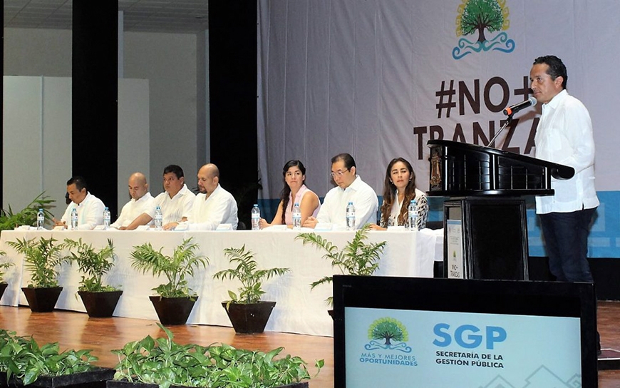 Para corregir el rumbo de Quintana Roo, Carlos Joaquín instruyó a la Secretaría de la Gestión Pública la formalización de acuerdos de coordinación con los municipios para establecer el Sistema Municipal de Control y Evaluación de la Gestión Pública, y de colaboración en materia de transparencia y combate a la corrupción.