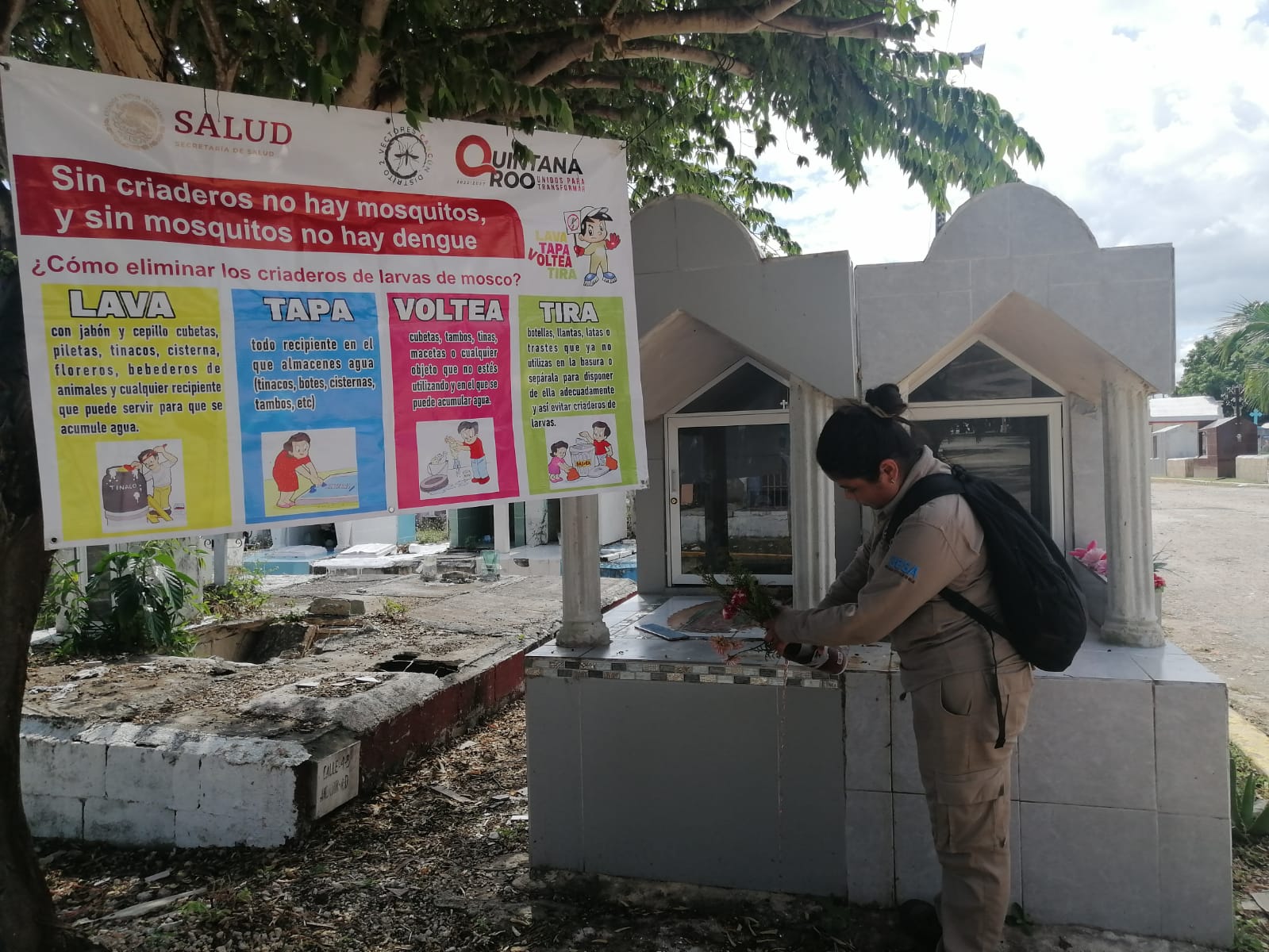 La directora de OPABIEM, Landy Canché Pantoja, anunció que adicional a la limpieza en los camposantos, se está realizando la fumigación de las áreas por parte de Secretaría de Salud de Quintana Roo, con la finalidad de preservar un ambiente saludable para la ciudadanía que visitará estos lugares.