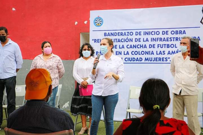 Isla MUjeres.- Dotar de espacios deportivos dignos a la población isleña es prioridad de la presidenta municipal de Isla Mujeres, Atenea Gómez Ricalde, por lo cual se dio el banderazo de inicio de la rehabilitación de la infraestructura de la cancha de fútbol rápido en la colonia Las Américas en Ciudad Mujeres.