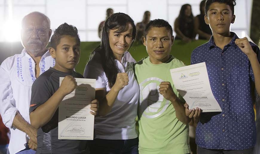 La Presidenta Municipal, quien entregó reconocimientos a los boxeadores que representaron al municipio en la fase estatal de la Olimpiada Nacional 2017, adelantó que en breve se entregará el domo de la comunidad de Leona Vicario, en el que también se llevan a cabo trabajos de rehabilitación.