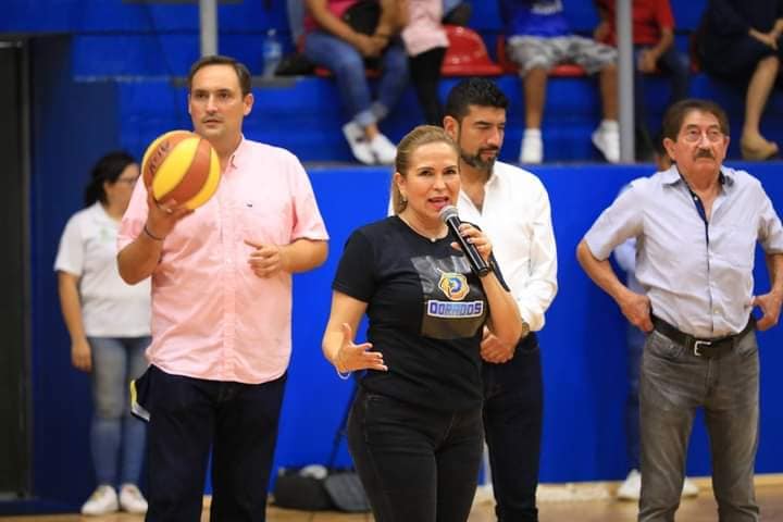 *Acompañado del ex jugador de la NBA, Horacio Llamas, la edil destacó el impulso a mejores espacios deportivos, al tiempo de presenciar el juego entre Dorados de Palya del Carmen contra los Tapires de Tizimín