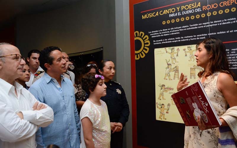 Al inaugurar las exposiciones “Una ofrenda a Xochipilli. Entre luces canta y llega el sol” y “Sangre para los Dioses. El sacrificio en la visión de los Mayas y los Mexicas” en el Museo Maya de Cancún, el gobernador Carlos Joaquín afirmó que espacios de este nivel cultural permiten atraer más turismo y el turismo, a su vez, más empleos mejor pagados para la gente.