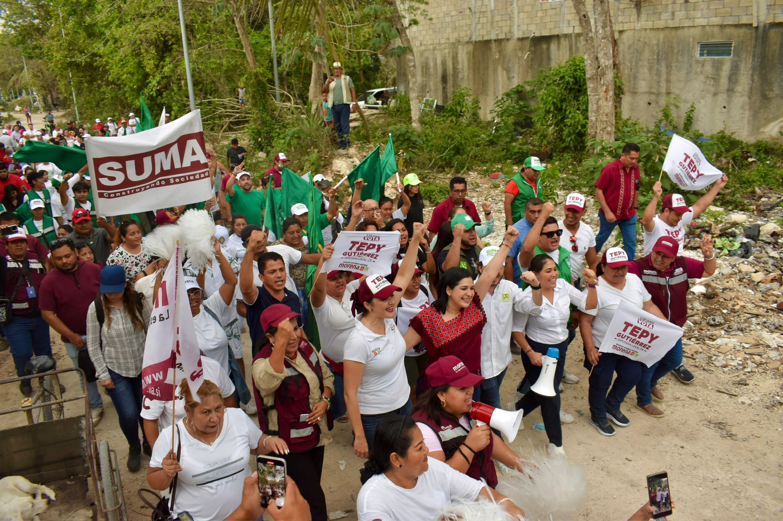 En ambos recorridos, Estefanía Mercado estuvo acompañada por Tepy Gutiérrez, candidata a diputada local por el Distrito IX; Fernando Muñoz, candidato a octavo regidor y presidente municipal del Partido Verde, así como referentes de morena y vecinos que caminaron a su lado.