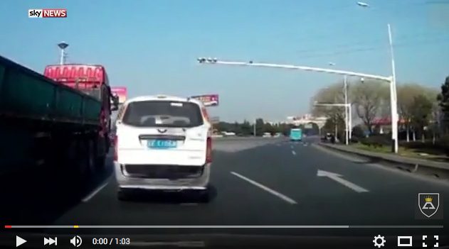 Un video grabado por una cámara instalada dentro de un automóvil que circulaba por las calles de Shizou, China, captó el momento en el que un niño que viajaba en la parte trasera de una camioneta cayó a mitad de la calle sin que sus abuelos se percataran del hecho.